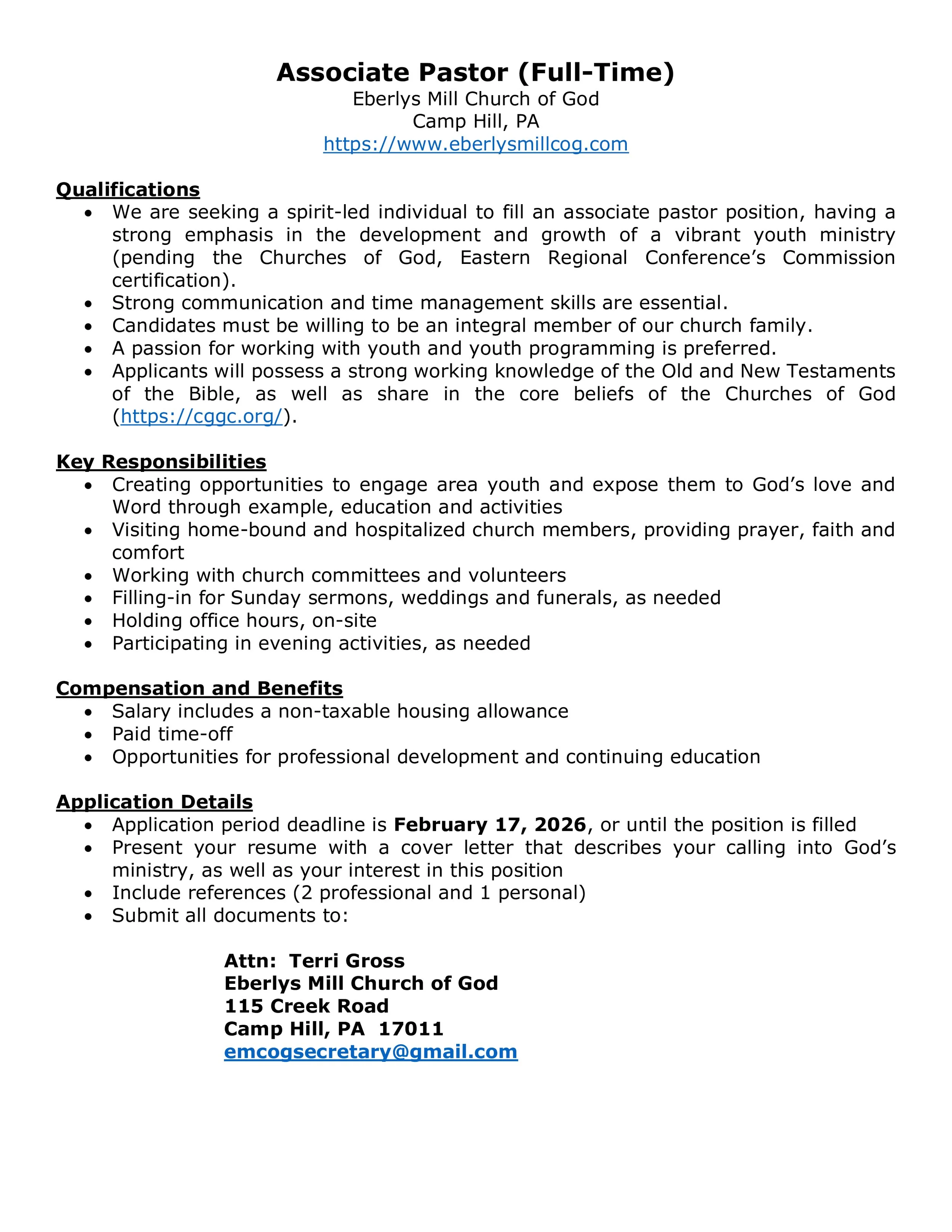 Eberly's Mill Church of God, 115 Creek Road, Camp HIll, PA(717) 761-3282emcogsecretary@gmail.com