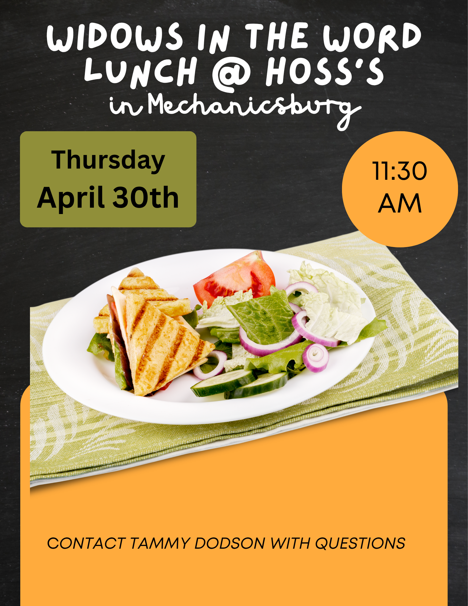 Widows in the Word Thursday, April 30, 2026 11:30 AM 3:30 PM 11:30 15:30 Eberly's Mill Church of God 115 Creek Road Camp HIll PA (map) Google Calendar ICS